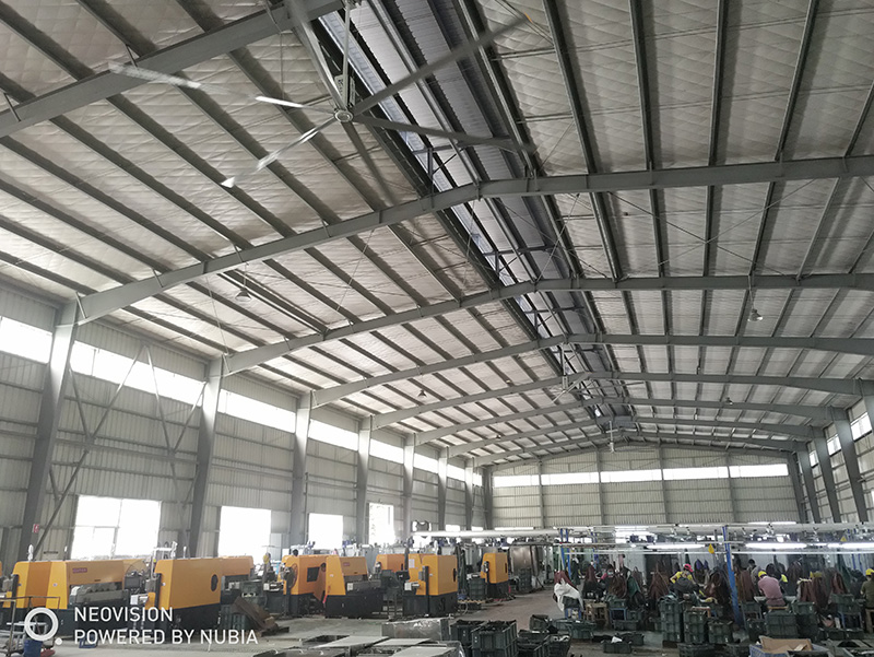 1、覆蓋面廣:超大直徑(7.3米)、低轉速,工業吊扇大范圍內促使空氣有序流動,每臺風扇的有效近似覆蓋面積超過1000平米以上;