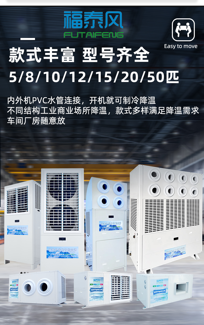 款式多樣有吊掛式,射流款,立式,管道式工業(yè)省電空調(diào)滿足不同車間降溫需求。