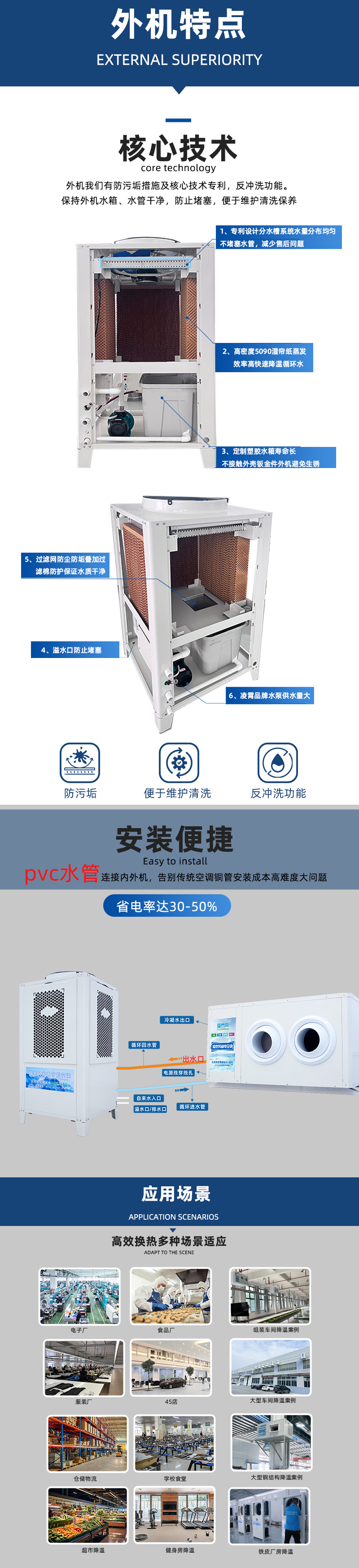 款式多樣有吊掛式,射流款,立式,管道式工業省電空調滿足不同車間降溫需求;